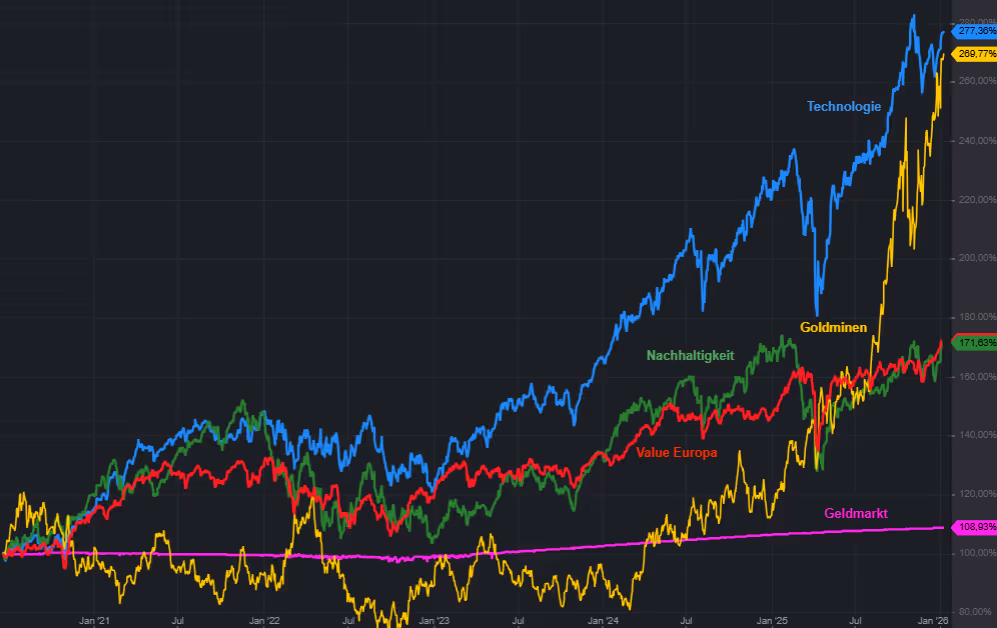 Woher das Cash kommen soll? Na, aus Gewinnmitnahmen, wenn es mal gut gelaufen ist. Und so haben die Anleger unserer Strategien SJB Surplus und SJB Substanz zuletzt die Info erhalten, dass wir ein paar der Gewinne der letzten Monate realisiert und damit defensivere Werte und Cash erhöht haben. Nicht weil wir überzeugt sind, dass die Schneezombies morgen durch die Mauer brechen, sondern weil ein Eimer mit Schotter in der Garage Sicherheit gibt. In der Strategie SJB Nachhaltig planen wir dies ebenfalls.